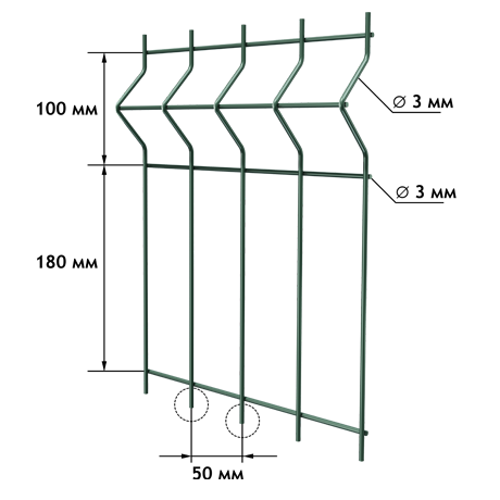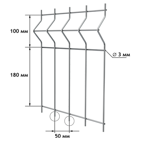 ZINC-perimetr 1730 2500 3,0 100 мм (2 изгиба) Горячее цинкование (1 класс) Без окраски Временные ограждения, внутреннее зонирование